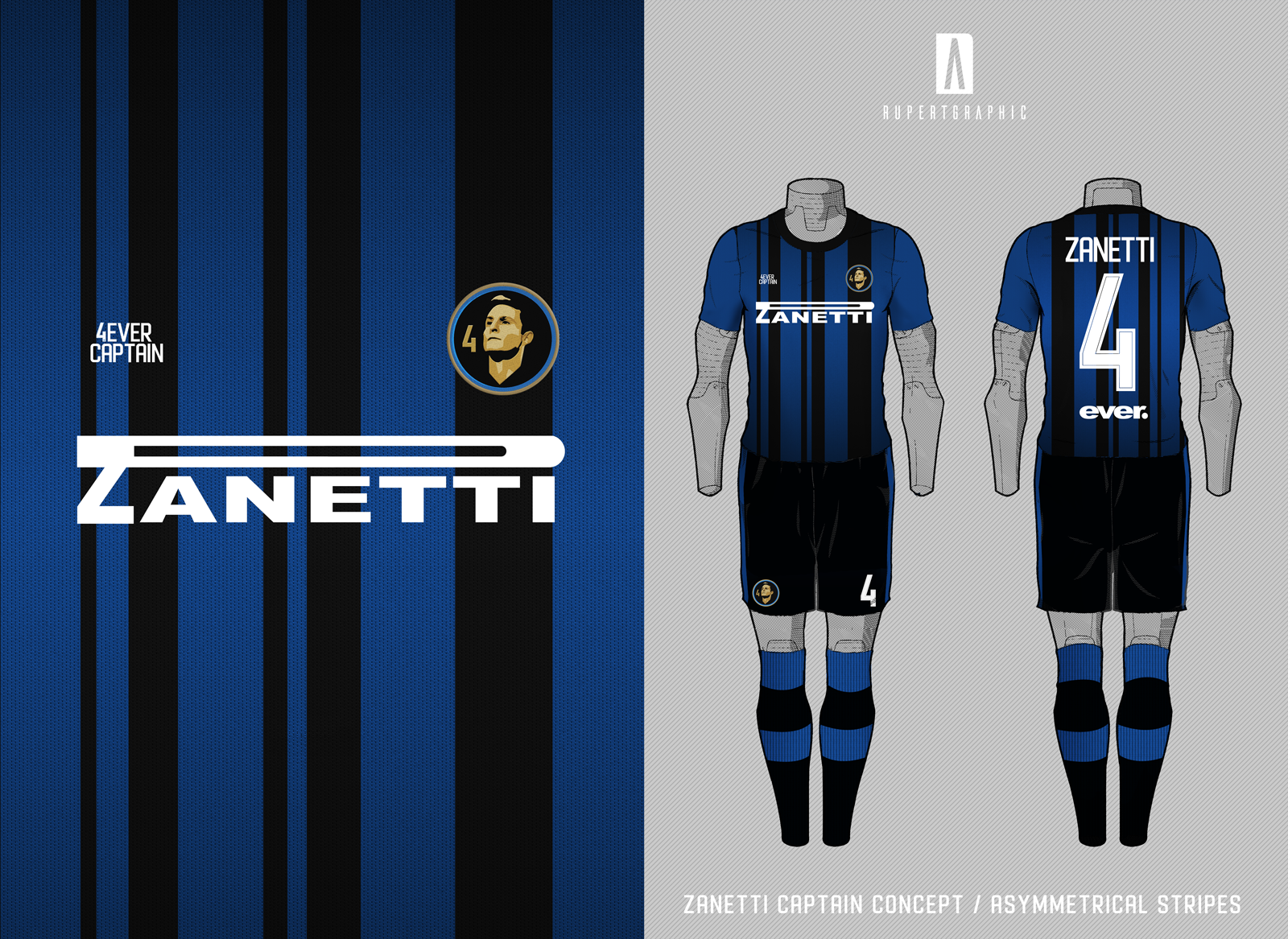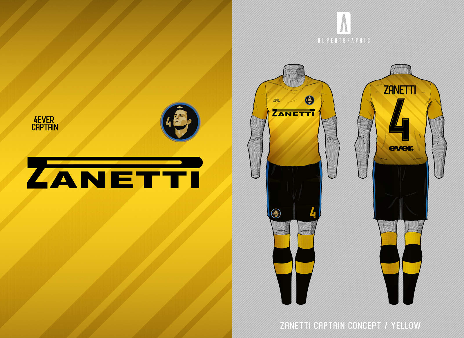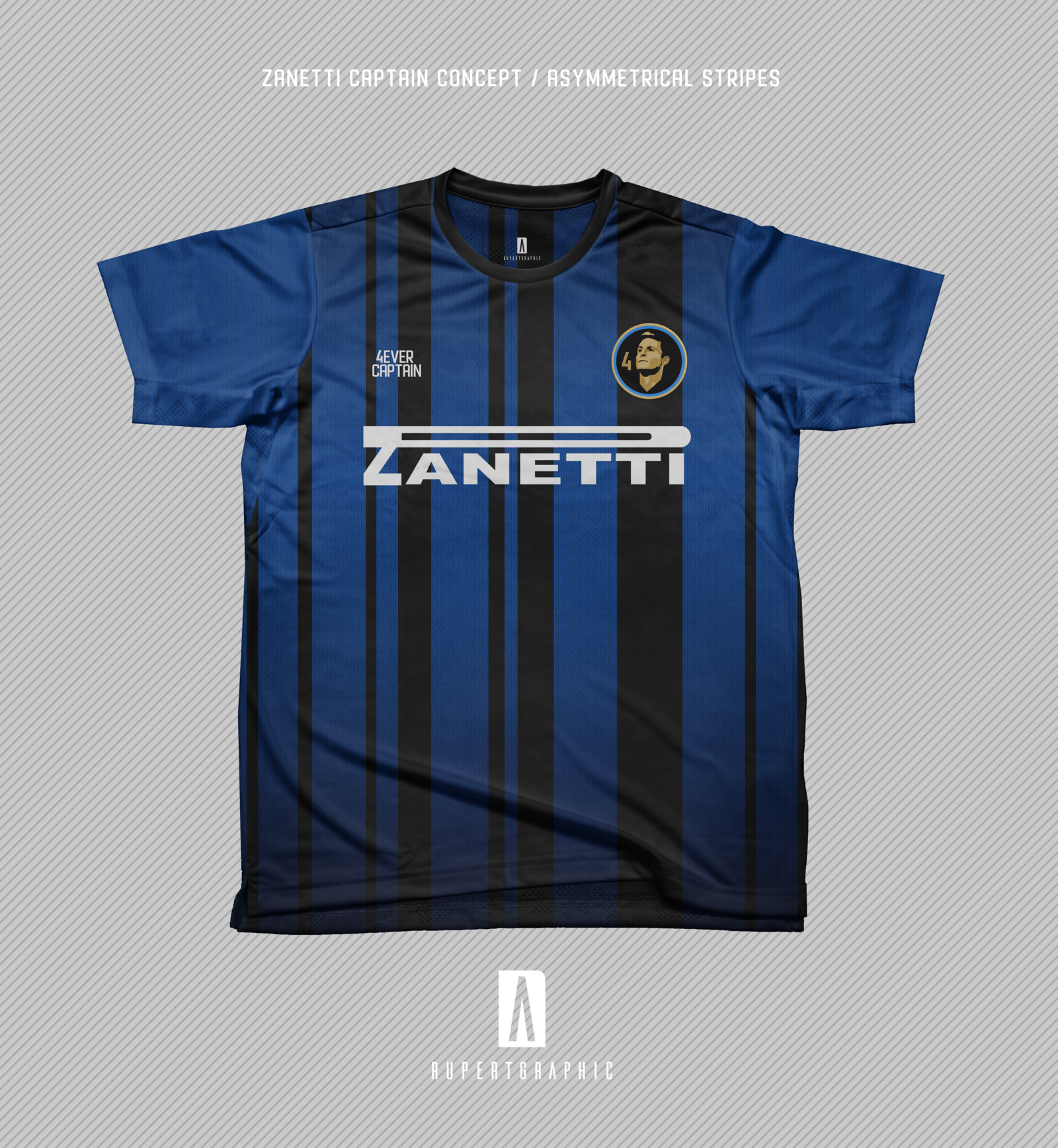 Captain Concept Shirt - 4Zanetti Asymmetrical vertical stripes - Black & Blue Asymmetrical Oblique stripes - Yellow Asymmetrical Horizontal Stripes - Black & Grey
